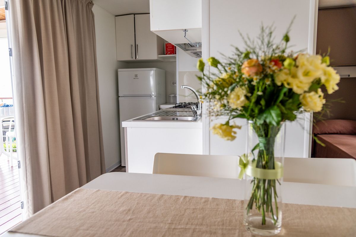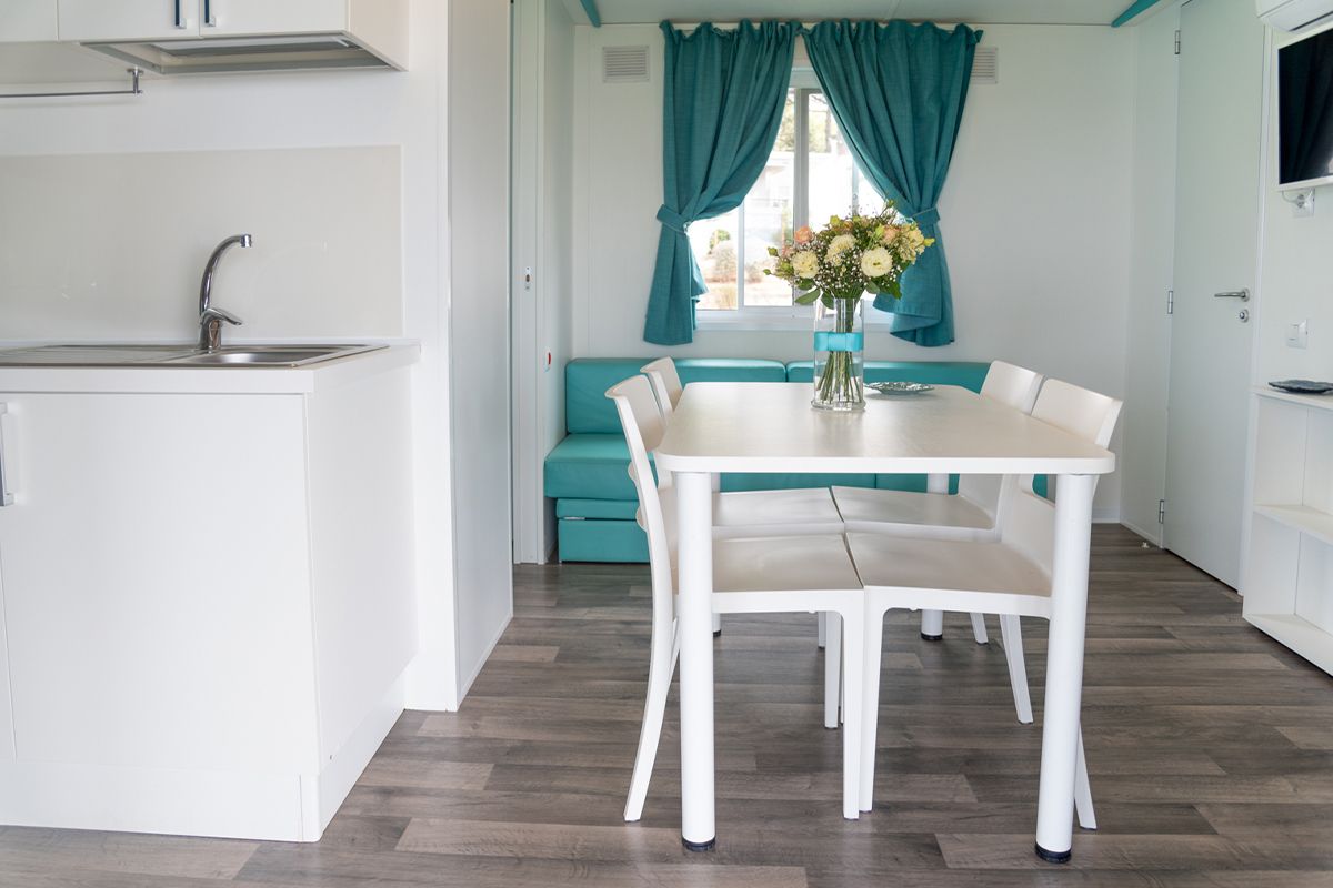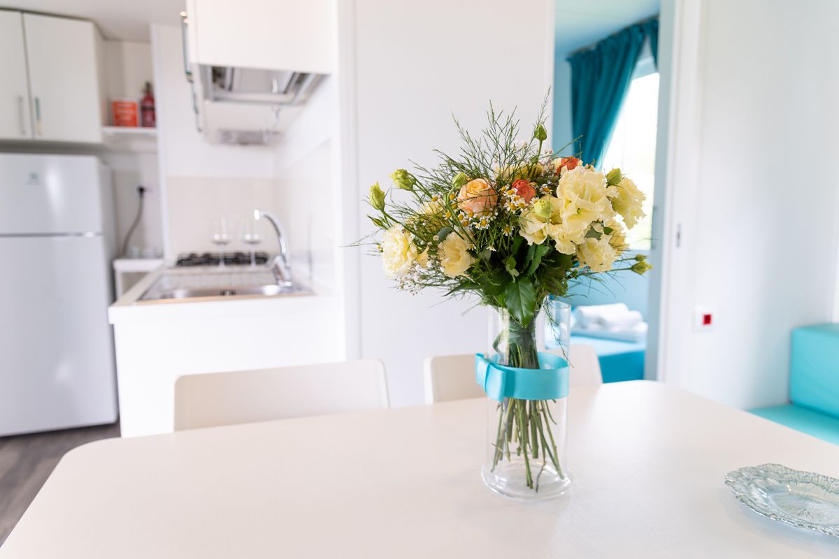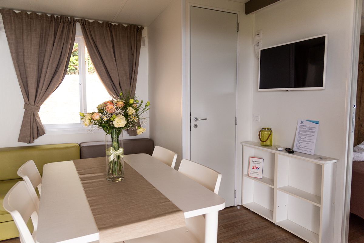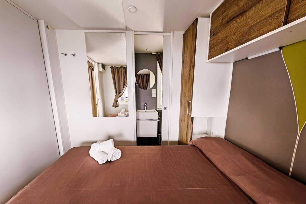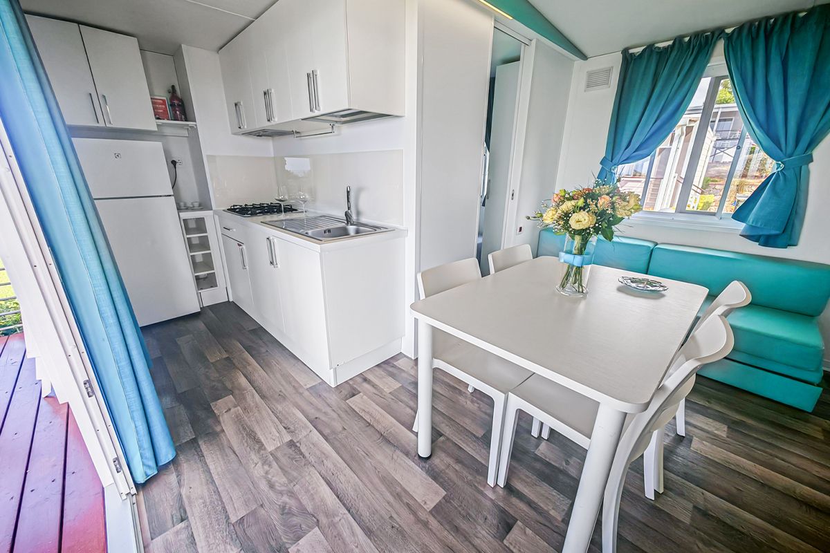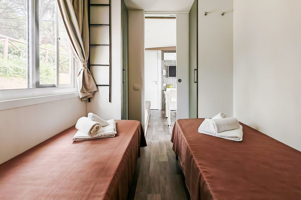 Ogni casa può ospitare fino a quattro adulti e un bambino di età non superiore ai dieci anni. Gli interni sono eleganti e accoglienti, con una camera matrimoniale, una seconda camera dotata di due lettini e un terzo letto a scomparsa, e un soggiorno luminoso dove il divano può essere trasformato in un ulteriore letto. Il bagno principale è dotato di una moderna cabina doccia cromatica, mentre alcune unità dispongono di un secondo bagno con lavabo per maggiore comodità.