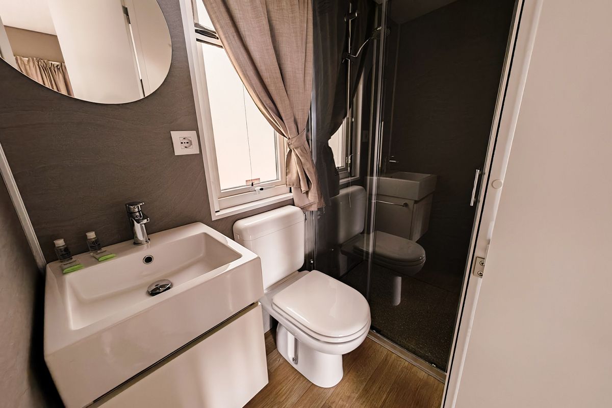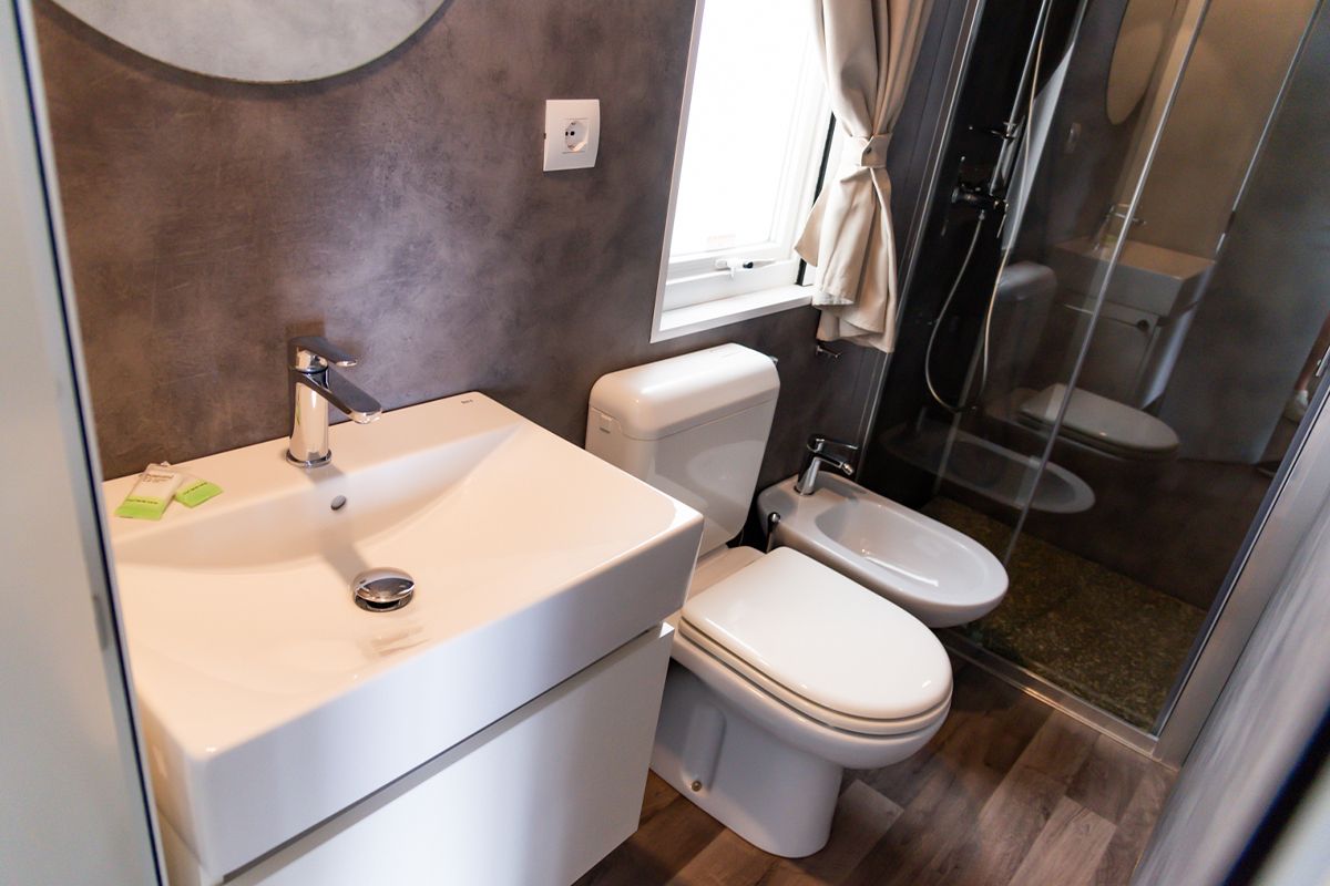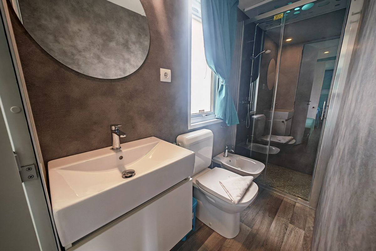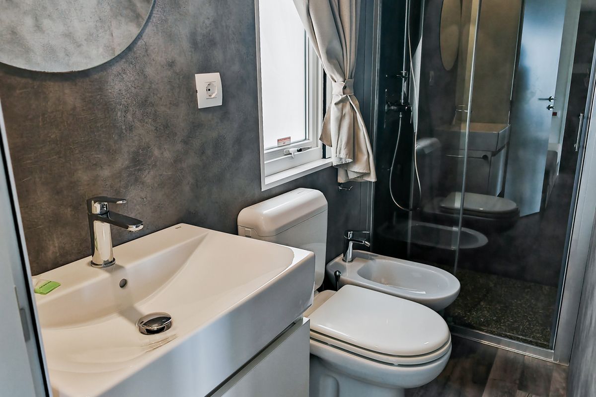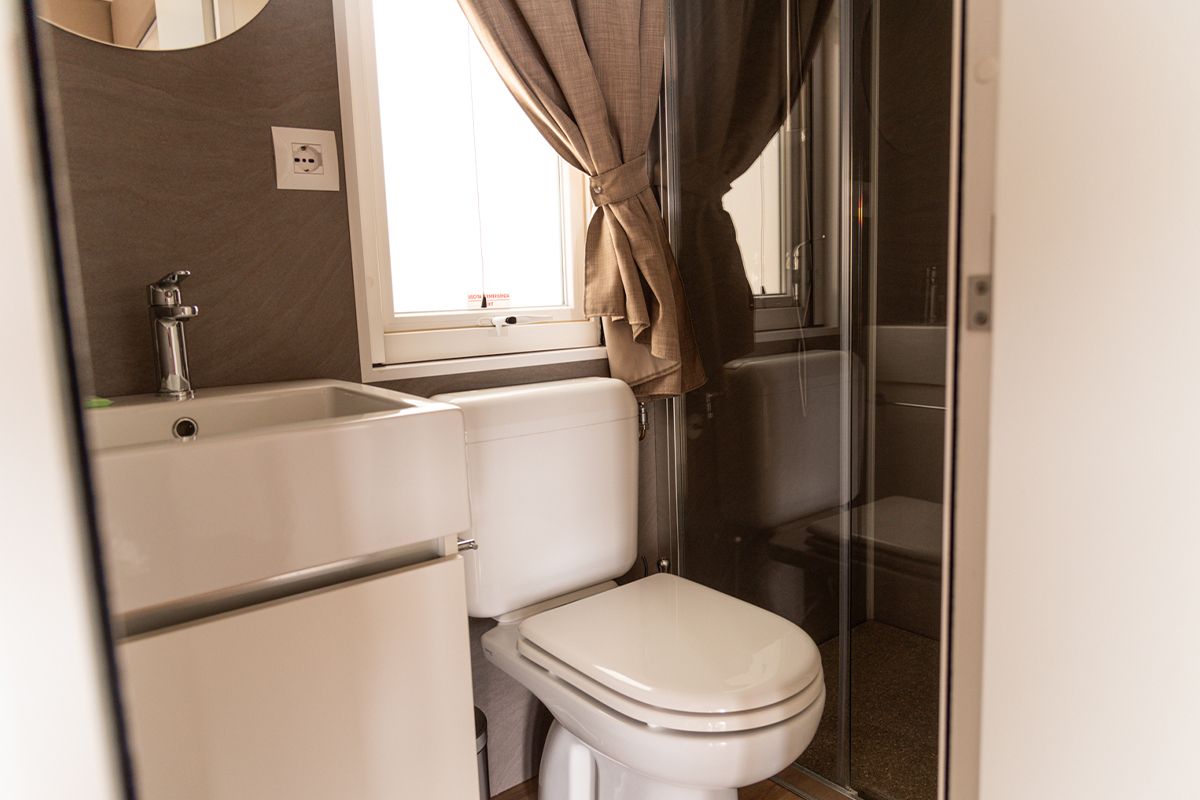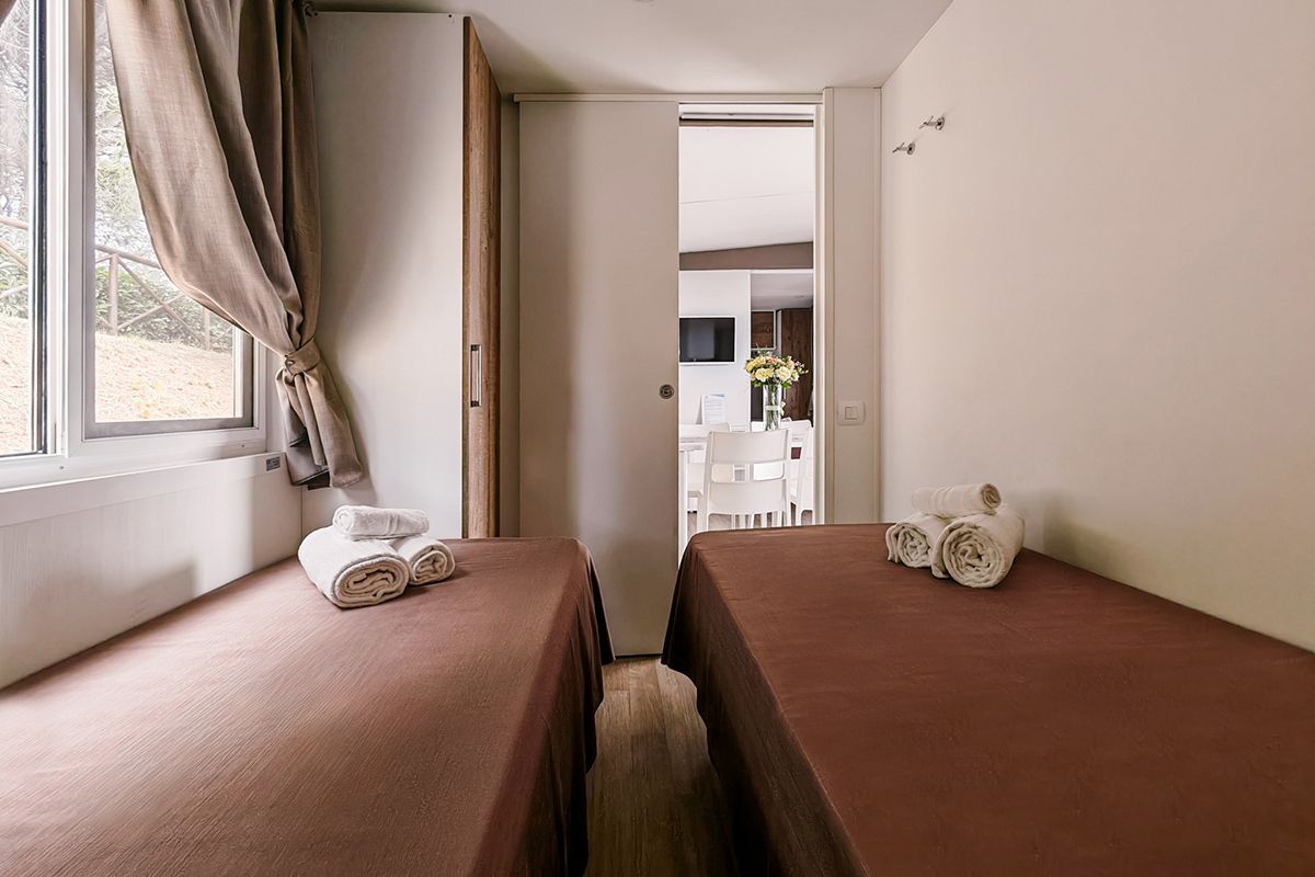 Ogni casa può ospitare fino a quattro adulti e un bambino di età non superiore ai dieci anni. Gli interni sono eleganti e accoglienti, con una camera matrimoniale, una seconda camera dotata di due lettini e un terzo letto a scomparsa, e un soggiorno luminoso dove il divano può essere trasformato in un ulteriore letto. Il bagno principale è dotato di una moderna cabina doccia cromatica, mentre alcune unità dispongono di un secondo bagno con lavabo per maggiore comodità.